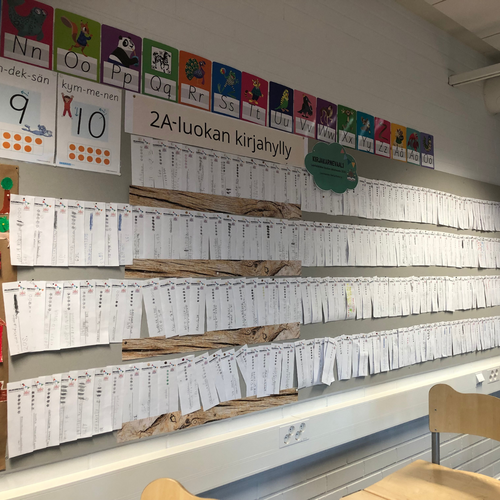 Kuvia luokkien kirjahyllyistä: